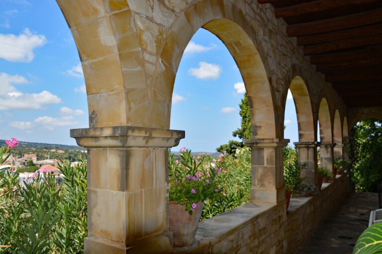 Das Festungskloster Eleousis Lage und Aussicht Das Kloster Eleousis liegt in der Präfektur Heraklion auf Kreta. Weithin sichtbar thront es